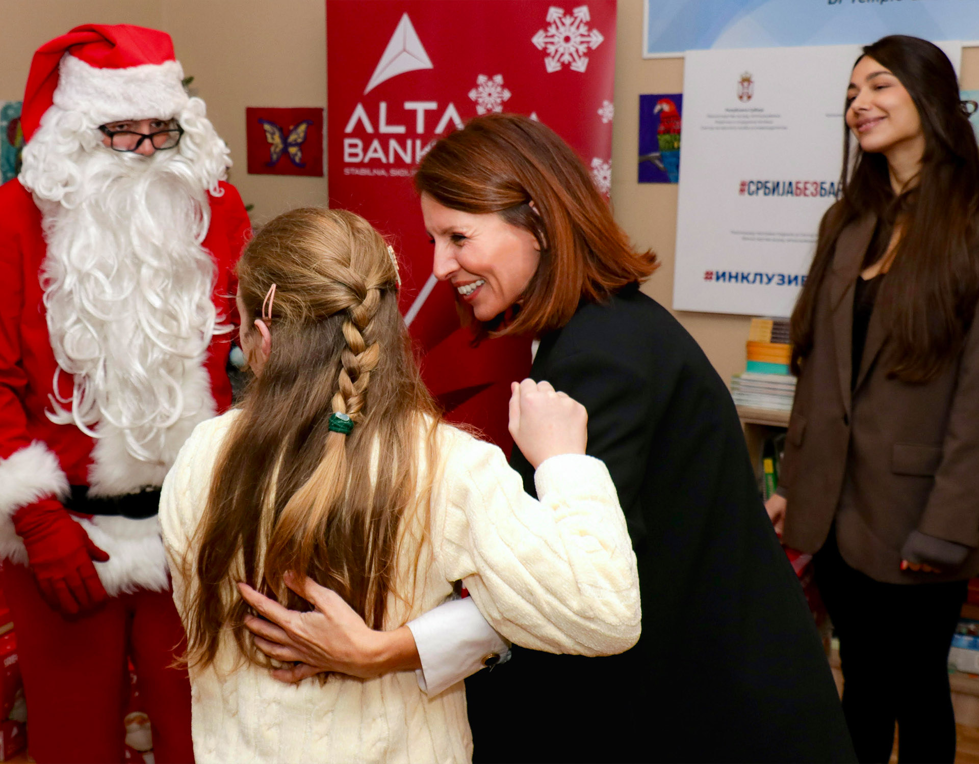 The branch opening was marked by a gesture that brought warmth to the holiday season. The ALTA Bank team visited the Day Center for Children and Youth in Kraljevo, where the little ones greeted them with smiles and joy. Santa Claus arrived with gift packages carefully prepared by the employees, and the children enjoyed moments they will remember. The bank also donated books for the center’s library, as a sign of support for education and development of creativity. The action was implemented as part of the ‘For a City Worth Loving’ program in cooperation with the “Inclusive Serbia” Center and the Ministry of Labor, Employment, Veteran and Social Affairs.
