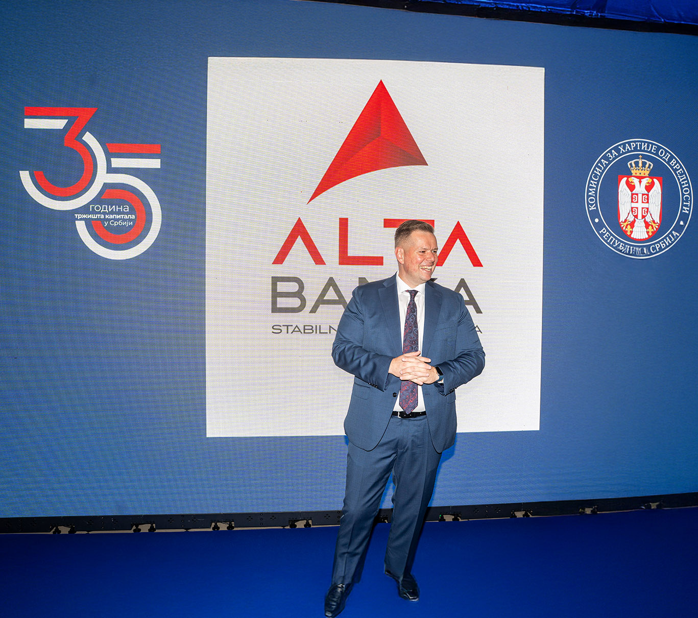 ALTA Bank had the honor of being the main sponsor of the ceremony marking the 35th anniversary of the establishment and development of the capital market in Serbia. The celebration was held yesterday, October 2, at the White Palace, in the presence of representatives of institutions, regulatory bodies, companies, investors, and members of the professional public from both Serbia and abroad.